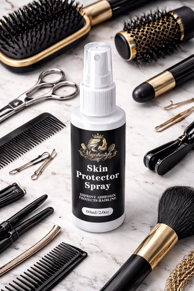 Protect your skin and achieve a flawless wig install with Majesticstyle Skin Protector Spray. This lightweight adhesive skin guard creates a protective barrier between your skin and lace adhesives, helping to reduce irritation while improving adhesive performance.